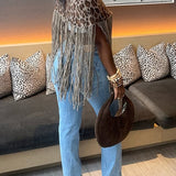 Fringe Combo Leopard Poncho