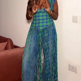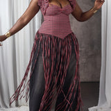 Plaid Halter Fringe Top