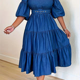 Plus-Size Puff-Sleeve Ruffle Dress