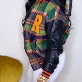 Plus-Size Faux-Leather Combo Plaid Jacket