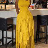 Solid Sleeveless Fringe Dress