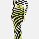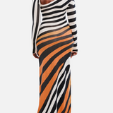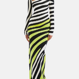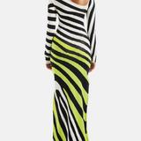 Stripe Asymmetric-Neck Maxi Dress