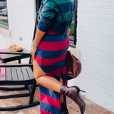 Stripe Polo Top & Slit Skirt Set